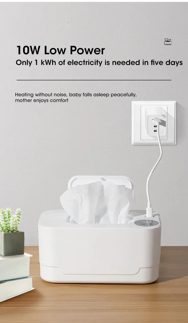 2.【Even Heating and Thermostat】This baby wipe warmer features even heating, heating the wipes in all directions until reaching a comfortable temperature that is suitable for baby's delicate skin. And the baby wipe warmer has a built-in temperature sensor, after heating it will remain at a constant temperature. No need to worry about accidents.